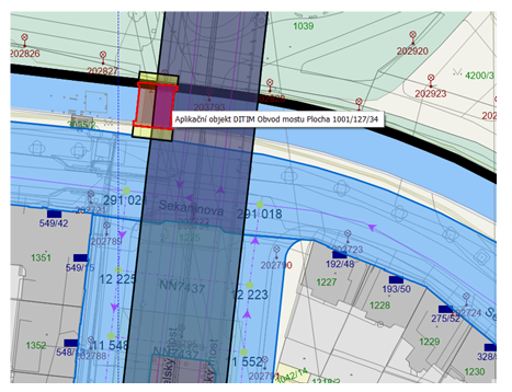 Objekty DTM v mapě (příklad „obvod mostu“)