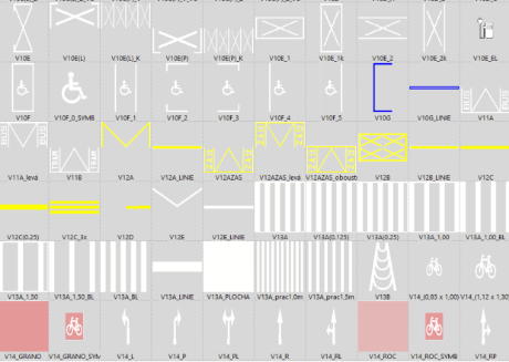 Ukázka knihovny vodorovných značek: