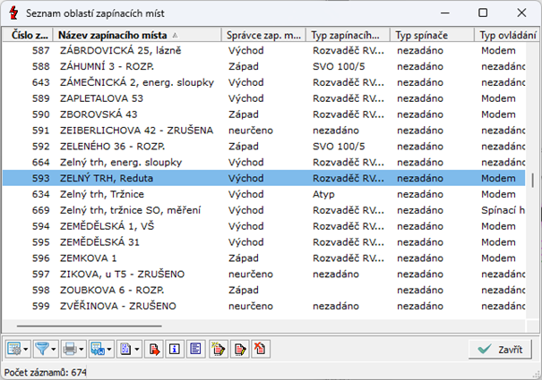 Současně je spravována databáze zapínacích míst registrovaných v elektrickém schématu a rovněž jsou zabezpečeny potřebné funkce pro vykreslení elektrického schéma dané oblasti zapínacího místa. Databáze zapínacího místa obsahuje informace specifikující dané místo, informace o kabelech a měřených proudech v jednotlivých fázích.