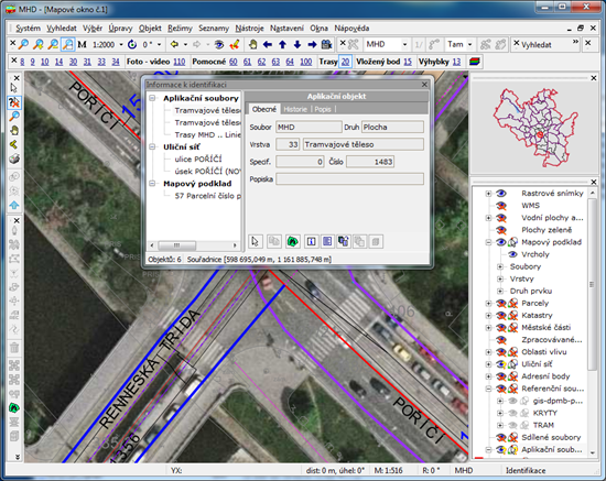 Aplikace „MHD“ je určena pro účely evidence zastávek, zastávkových stojanů, tras a linkového vedení městské hromadné dopravy. Součástí systému je modul pro evidenci dopravních průzkumů MHD (nabídky a poptávky).