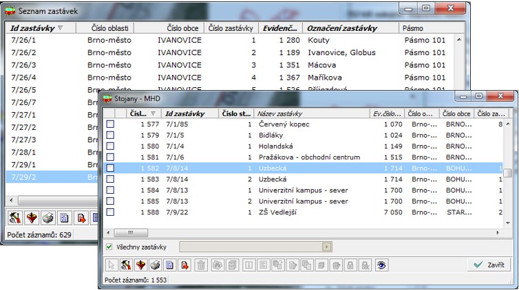 Aplikace umožňuje především správu grafického popisu bodových objektů reprezentujících zastávkové stojany MHD v mapovém prostředí, včetně správy příslušných informačních databází.