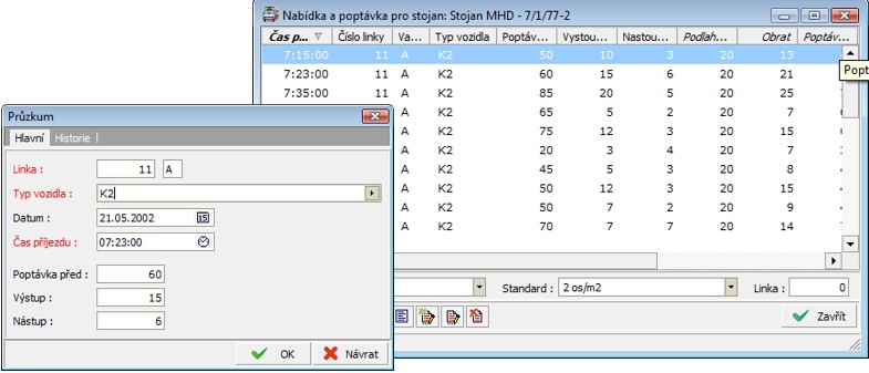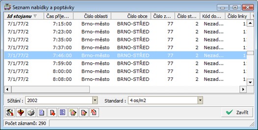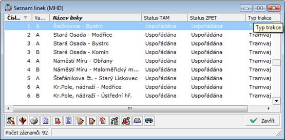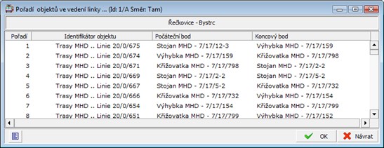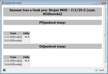 Systém umožňuje pro objekty reprezentující zastávkové stojany a trasy podávat základní informace o projíždějících linkách.