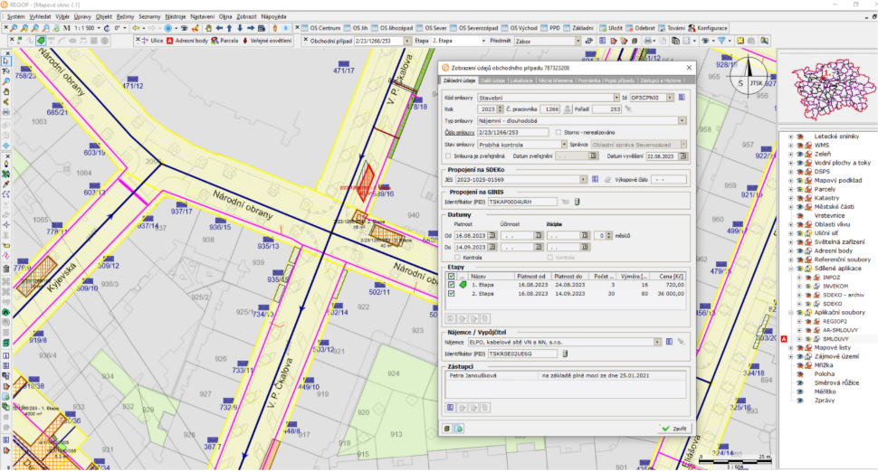 Referent na základě dodaných podkladů získaných z elektronické žádosti nebo osobním podáním vytváří záznam obchodního případu. Jeho rozsah se graficky zaznamenává zákresem objektů do digitální mapy. Grafický vzhled objektů se mění podle typu smlouvy.