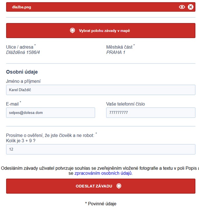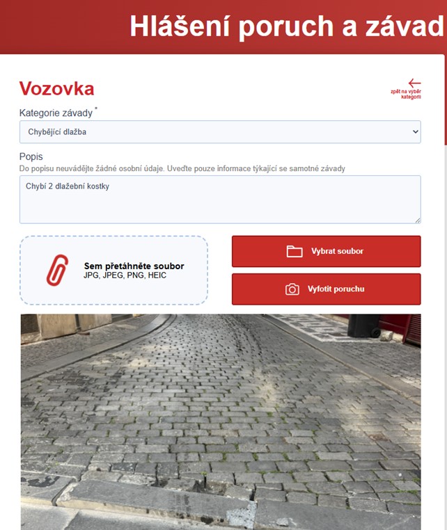 Webová aplikace / formulář slouží všem uživatelům k nahlášení jakékoliv poruchy či závady na spravovaném majetku. Prostřednictvím aplikace je možné správci předávat i podněty na zlepšení případně stížnosti.